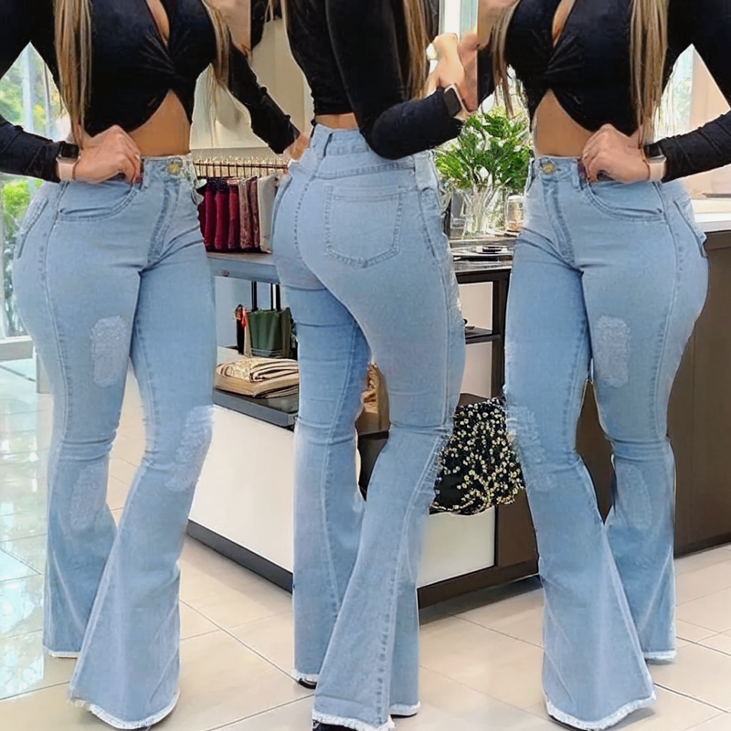 These contemporary bootcut jeans combine classic denim styling with modern comfort features, including a flattering high-waist design and subtle stretch for all-day wearability. The bootcut silhouette creates a timeless, leg-lengthening effect that works beautifully with various footwear styles.
